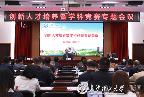 11月15日下午,我校创新人才培养暨学科竞赛专题会议在云塘校区一办公大楼九楼会议室召开。校长曹一家,学工部(处)、教务处、团委、评估中心、信息化中心和创新创业学院等相关部门负责人,各教学学院分管教学工作、实验室建设工作、学生工作的负责人参加。会议由副校长刘朝晖主持。