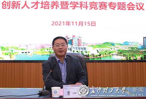 创新创业学院院长蒋加伏做了《依托学科竞赛 助力创新人才培养》的专题报告。他介绍了我校创新创业教育发展情况、近三年学科竞赛情况和“十四五”期间我校创新人才培养暨学科竞赛的工作目标。土木学院、计通学院、汽机学院和经管学院负责人就本学院创新人才培养和学科竞赛工作进行了经验交流和成果分享。