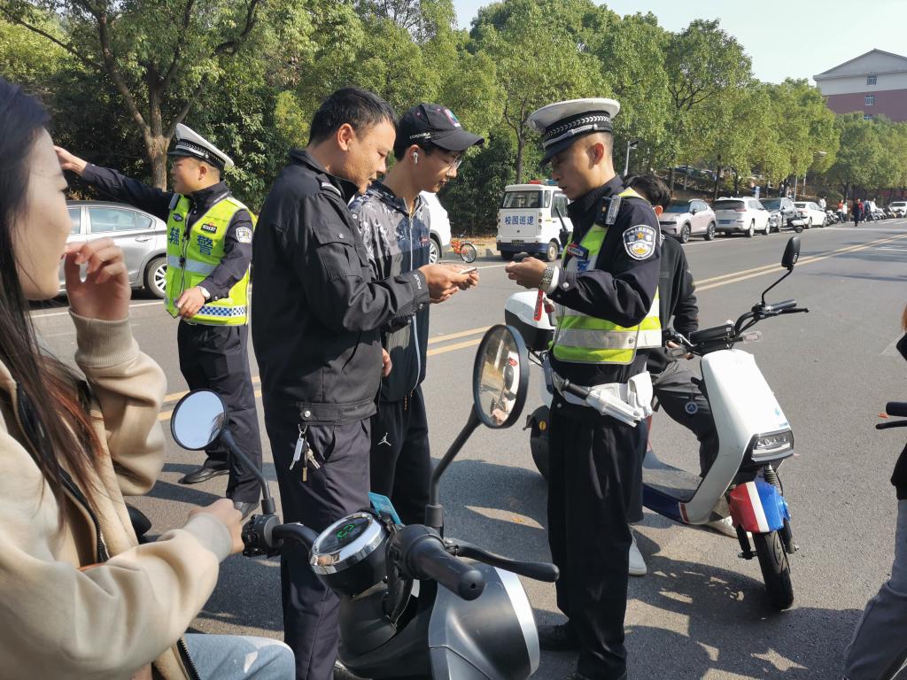 “同学们,驾乘摩托车、电动车一定要佩戴好头盔,提高交通安全意识”,整治行动中,天心区交警大队的警官们和学校保卫处工作人员对违规驾乘的同学进行文明劝导和教育宣传,引导学生学习交通安全知识,做到规范骑乘、安全出行。