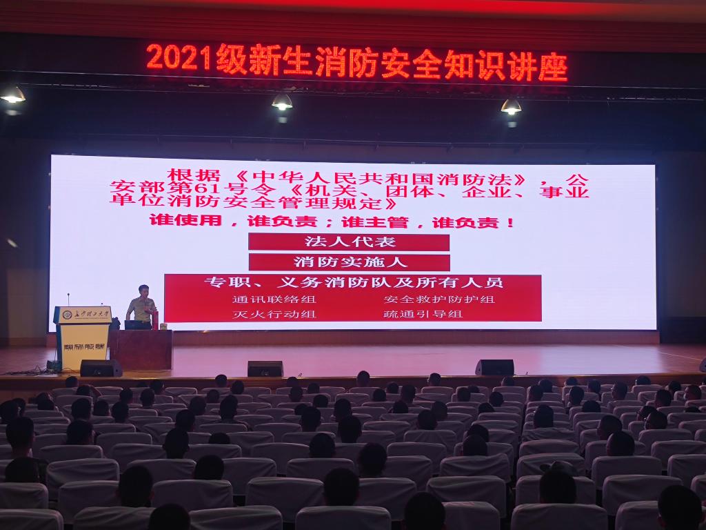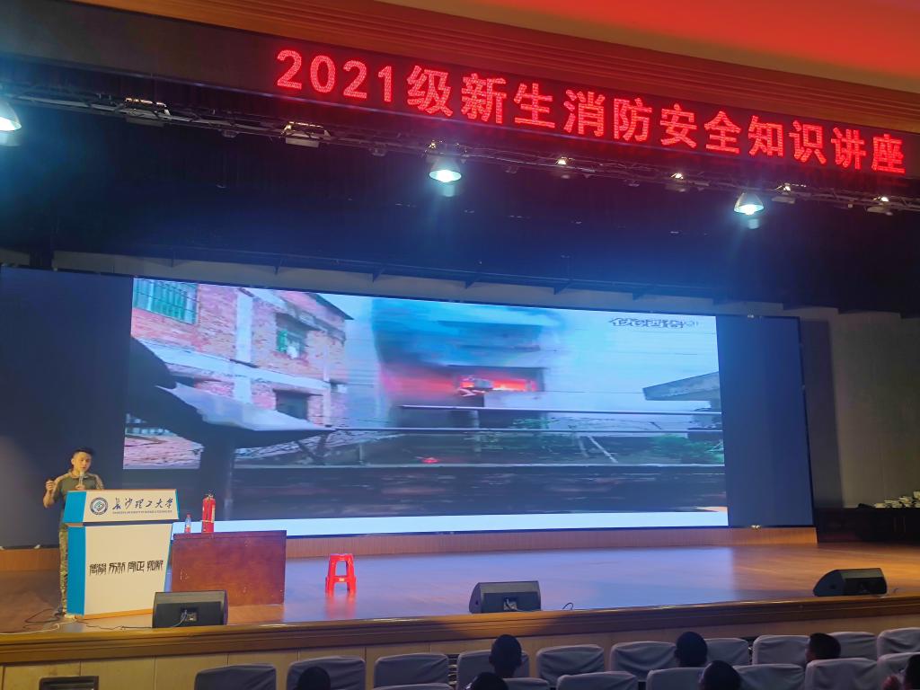 为切实做好校园安全工作,营造平安校园的良好氛围,增强2021级新生消防安全意识,提高学生自防自救能力,9月9日至18日,我校邀请消防安全协会的工作人员在金盆岭校区5教大礼堂开展了新生消防安全知识讲座活动。