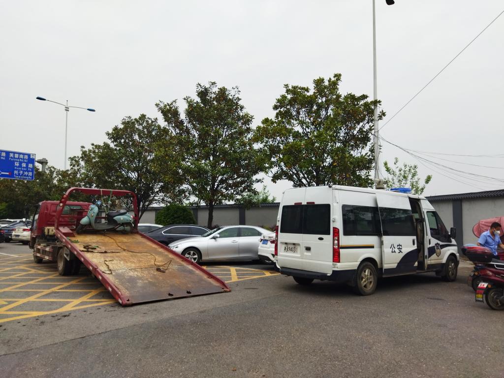 “同学,驾驶电动车一定要佩戴好头盔”、“请配合完成电动车安全教育学习并进行线上考试”,整治行动中,天心区交警大队的警官们和学校保卫处工作人员对违规驾乘的同学进行文明劝导和教育宣传,引导学生自觉遵守交通安全法规,做到规范行车、文明行车、有序停车。当天,天心区交警大队还对校园周边无牌电动车进行了现场查处。