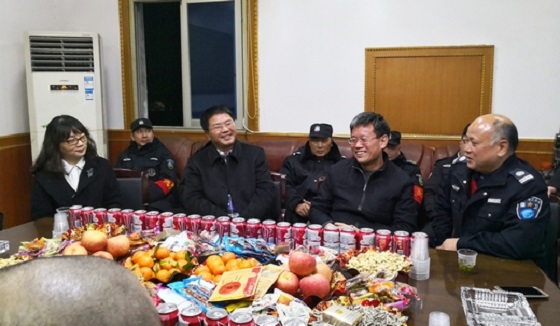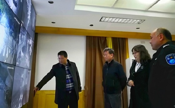 曹一家校长先后看望了金盆岭校区和云塘校区各门岗、校园“110”、视频监控中心等值班安保人员,和他们一一握手,感谢他们坚守岗位,维护了学校的安全稳定,并在二个校区的视频监控中心查看学校的安全情况。在和保卫处工作人员座谈中,他说2018年保卫工作取得较大的进步,得到学校的肯定,希望2019年保卫工作更上一层楼,积极推进金盆岭校区综治工作,并祝同志们新年快乐,万事如意。(文、图/王艳鸿  审/张祎)