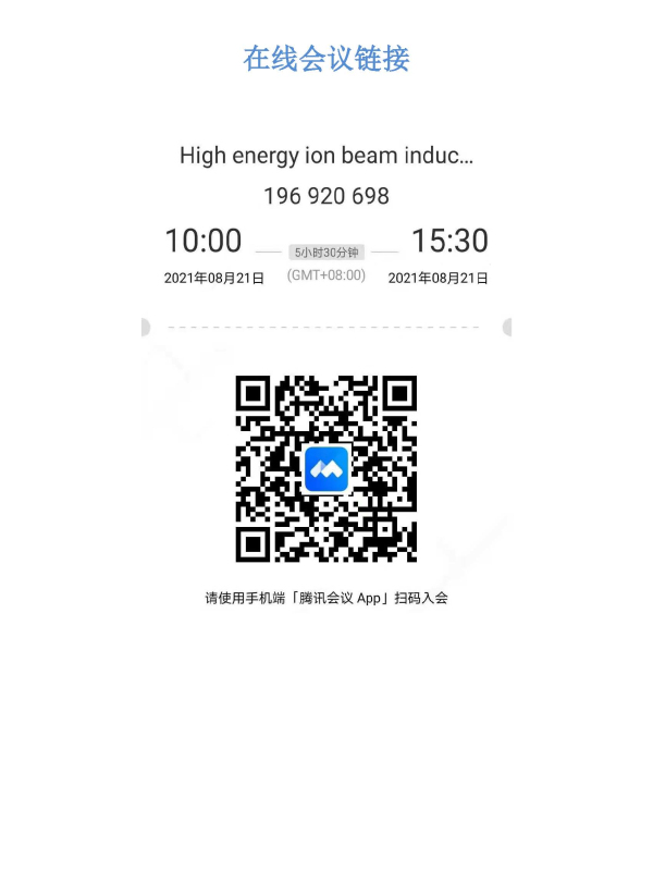 2021年8月21日(本周六),上午9:55-15:00,我院刘小春教授举办“高能离子束辐照表面加工与处理”的在线国际学术报告交流会,旨在促进相互交流与合作,欢迎大家积极参与。