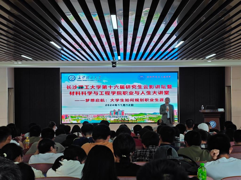 2024年11月12日下午,太阳成集团tyc122cc入口第十六届研究生云影讲坛在工科三号楼A307顺利举行,此次讲坛由材料学院承办,特邀岱勒新材总经理兼株洲岱勒总经理段志勇主讲,岱勒新材人力资源经理王文、材料科学与工程学院党委书记郑延恒、党委副书记邵巧艳、副院长谢炜、专任教师易文君及邓吨英出席,本次活动由邵巧艳主持,全体研究生及部分本科生代表共200余人参与。