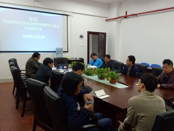 无机材料系教工党支部书记李海斌主讲了题为“弘扬长征精神做合格共产党员”的微党课。全体党员认真学习了习近平总书记在纪念红军长征胜利80周年大会上的讲话精神,简要回顾了红军长征的艰难历程,深入了解了长征的伟大历史意义、红军长征胜利的原因、以及弘扬长征精神对于我们今天的社会主义建设事业的重要性。张国强同志结合材料学院建设,对教工党员如何发扬长征精神提了几点建议。他指出,材料学院作为一个新成立的学院,建设任务繁重,需要全体教工党员发挥长征精神,坚定信念,不畏难,不怕苦,敢于牺牲,乐于奉献,为学院建设竭尽全力。全体党员纷纷发表了个人学习体会,气氛热烈,一致认为在学院建设阶段应该弘扬长征精神,齐心协力奔发展,甘于奉献,不计得失,为学科建设和新专业的申报贡献自己的力量。