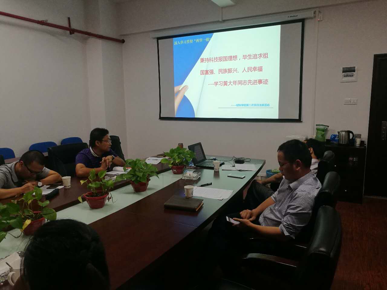 9月20日,材料学院教工党支部在新能源楼A317开展了“学习黄大年同志先进事迹”主题党日活动。