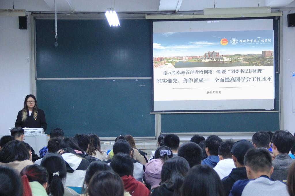 11月24日晚八点,材料科学与工程学院于云塘校区工科三号楼B220室举行“团委书记讲团课”暨第八期卓越管理者培训。学院分团委书记李心怡以《唯实惟先,善作善成——全面提高团学会工作水平》为题进行授课,第七届团学会全体成员参加。