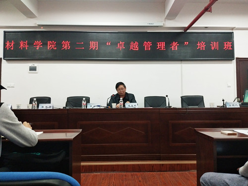 10月17日下午,材料学院于新能源大楼302举行第二期“卓越管理者”学生干部培训班第二次培训,主讲人为关工委副主任周再林,参加本次培训会议的有校关工委常务副主任王乃厚、学院党委书记张国强、副书记唐青、辅导员谢易真、陈鑫林以及团学会学生干部和各班班委。