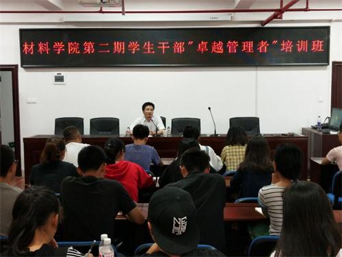 10月10日下午15:30,材料学院在新能源大楼302举行第二期“卓越管理者”学生干部培训班第一次培训,主讲人为校团委书记陈曦,参加本次培训会议的有材料学院党委副书记唐青、分团委书记陈鑫林以及团学会全体学生干部和各班班委。