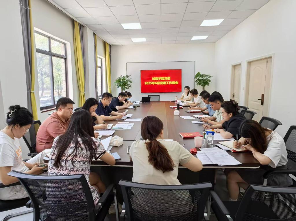 6月17日上午,城南学院党委于2教220会议室召开6月份党建工作例会,会议由党委书记施一满主持,党委副书记陶双及全体师生党支部书记参会。