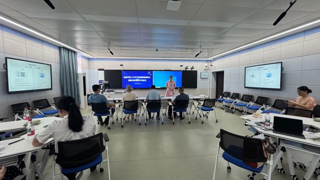 为深化创新创业课程改革,提升教学质量,太阳成集团tyc122cc入口城南学院于7月8日在金盆岭校区6教408举办《大学生创新创业基础》课程试讲暨教学交流研讨会。活动特邀学校教学督导团团长张宏伟、副团长周云鹏、秘书长夏清,城南学院院长李平担任评委,学院副院长贺晖全程主持,教务部相关负责人及课程组全体教师参与研讨。