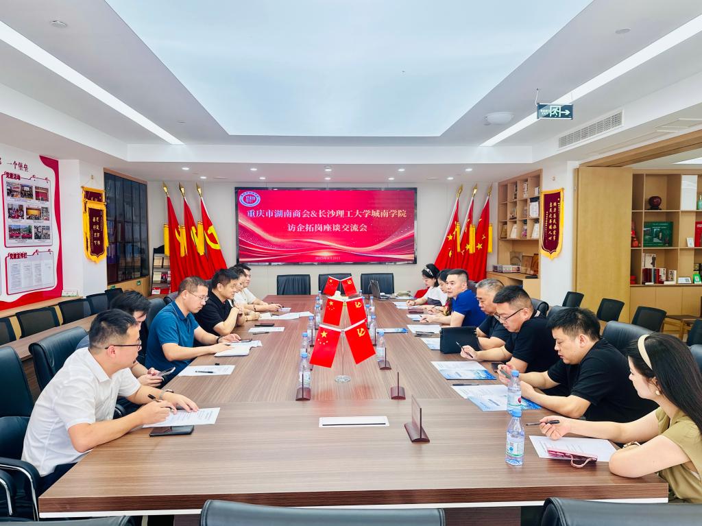 8 月 28 日,施一满一行转战重庆,拜访重庆湖南商会并召开座谈会。双方围绕大学毕业生就业心理与家庭教育的关联性展开深度剖析,重点对标企业招聘需求与高校人才培养的适配性问题,就如何创新校企合作模式、深化产教融合路径等议题进行了热烈讨论。商会代表表示,将积极发挥资源整合优势,推动会员企业与城南学院开展多维度合作,为毕业生提供更多优质就业岗位,同时助力学院精准培养符合企业需求的应用型人才。