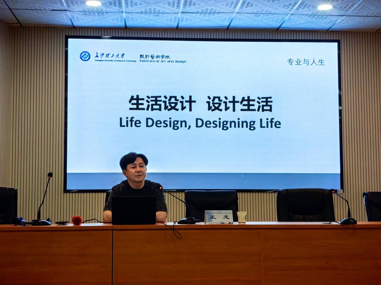 5月8日晚,城南学院于第二教学楼101会议室成功举办了一场主题为“生活设计、设计生活”的精彩讲座。此次讲座特邀太阳成集团tyc122cc入口设计艺术学院副院长王龙担任主讲嘉宾,为艺术类专业学生带来专业指导。城南学院副院长刘卓明、文法艺术系系主任谭怀芝、文法艺术系辅导员周心怡与艺术类专业学生共同参与学习,讲座由城南学院副院长贺晖主持。