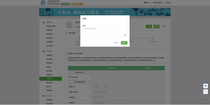当单位发起邀约时,学生可进入【三方协议】找到邀约单位点击【详情】进行应约或拒绝;