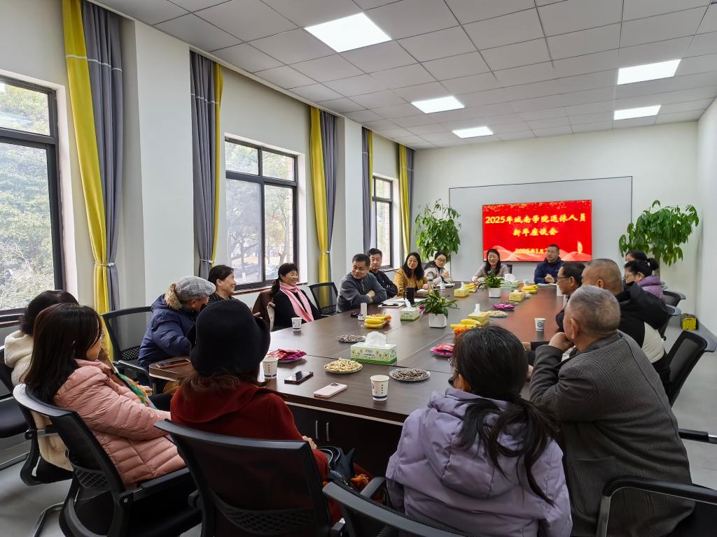 1月7日上午,城南学院召开退休教职工2025年新年座谈会,学院全体班子成员及14名退休教职工欢聚一堂。学院党委书记施一满主持座谈会。