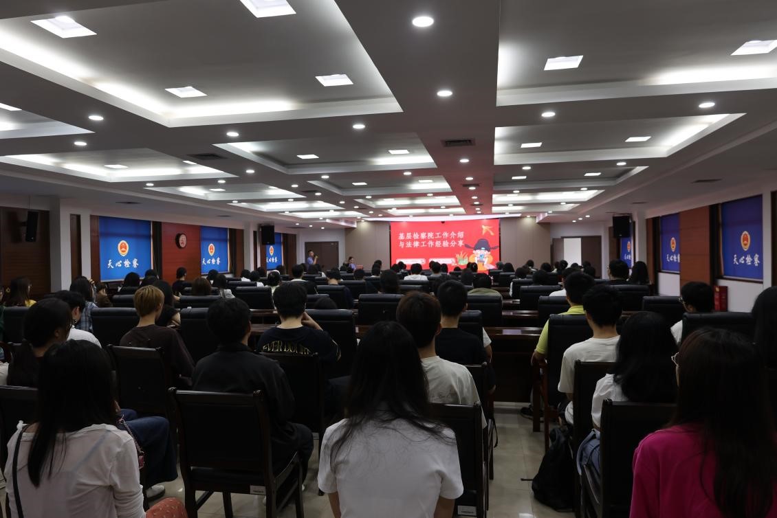 活动伊始,天心区人民检察院向阳明月检察官以“基层检察院工作介绍与法律工作经验”为主题,分享其成功的人生经历。她从第一检察部负责的普通刑事案件审查,到第二检察部对重大案件的把控,再到第三检察部的自侦职能,详细介绍了基层人民检察院的职能,使同学们对检察工作有了更加深刻的认识。接着,向阳明月检察官结合律师、仲裁员、检察官职业的优缺点、适配人群,为学生法律职业选择指明了方向。此外,她还强调法学专业的学生要积极参与社会实践活动,可通过参与公诉人大赛、业务竞赛及法律宣传活动等方式,提升自己的专业技能与实践能力。最后,进入到互动交流环节,向阳明月检察官耐心解答了同学们所提出的问题。