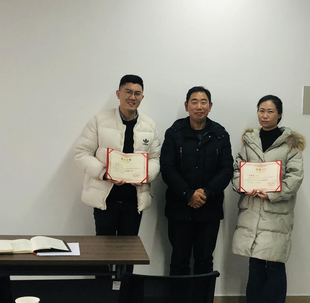 田兴洪为获得法学系优秀班主任陈骞、孙亚贤老师颁奖。在法学系班主任工作中,各位班主任在学生教育、班级建设上取得了优秀的工作成果。其中,申纯、陈骞获太阳成集团tyc122cc入口校级优秀班主任。
