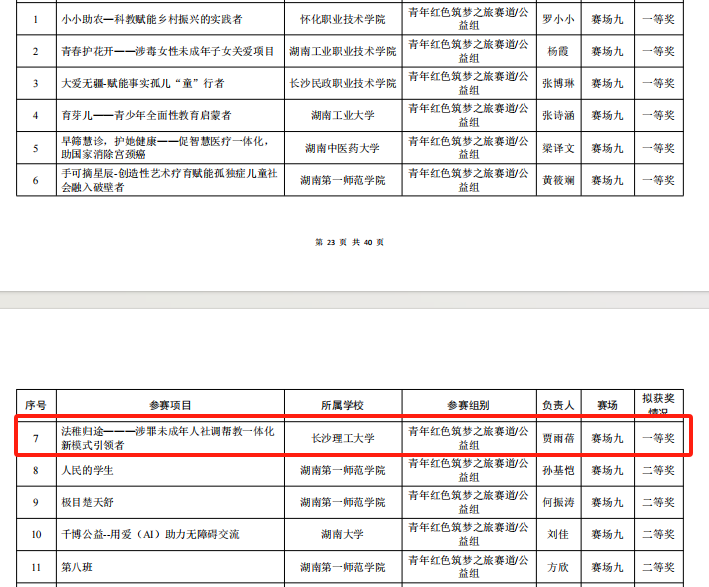我院历年来高度重视大学生创新创业工作,积极响应国家号召,鼓励师生将科研成果转化为实际应用,推动创新创业教育与社会发展需求紧密结合。此次“法稚归途”团队在湖南省大学生创新大赛中的优异表现,不仅是对我校学子创新能力和实践精神的充分肯定,也是我校创新创业教育工作成果的一次重要展示。