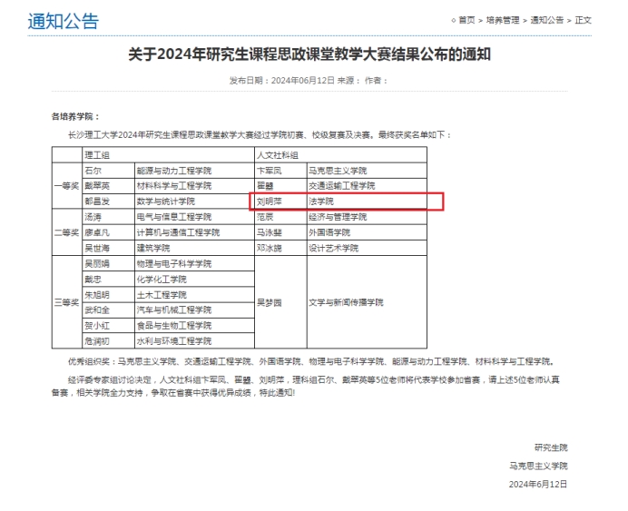 为全面推进研究生课程思政建设,更好服务“三高四新”战略任务。学校决定举办第二届太阳成集团tyc122cc入口研究生课程思政课堂教学大赛暨第二届湖南省研究生课程思政课堂教学大赛校内选拔赛。我院积极组织教师参加2024年太阳成集团tyc122cc入口课程思政教学竞赛。