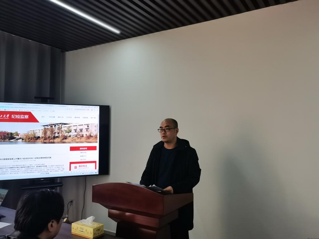 会上,党总支纪检委员申纯为大家做了学习《中国共产党纪律处分条例》和《中国共产党问责条例》的辅导报告,易顶强为大家做了学习《公职人员政务处分法》的辅导报告。易顶强还带领大家学习了《中央纪委国家监委公开曝光六起违反中央八项规定精神典型问题》和《中央纪委国家监委通报八起形式主义官僚主义典型问题》两个警示教育材料。大家在学习过程做到了学习有收获、思想受洗礼,学习内容上做到了与专业性质结合、与基层实际结合、与典型案例结合、与创新发展结合。