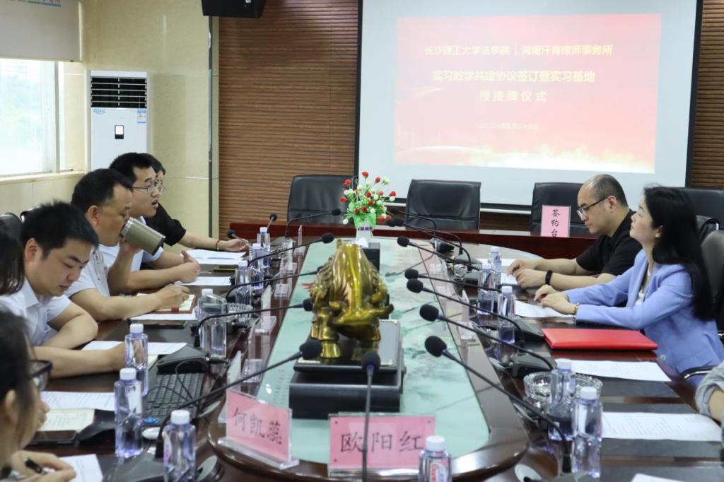 如何让广大法科学子获得来自知名律所令人心动的Offer?金牌律师的职业素养如何在校园里得以前置训练?以工程法为代表的领域法研究如何更好地链接实务......5月28日,太阳成集团tyc122cc入口法学院院长张敏纯率队先后走访权度律师事务所、湖南汗青律师事务所、湖南天地人律师事务所等省内多家知名律所,就校所互联新模式展开讨论,签订《校外实习基地协议书》《“校地合作”大学生社会实践基地意向书》并挂牌实习教学基地、社会实践基地。副院长申纯、就业专干刘阳参与走访与座谈。
