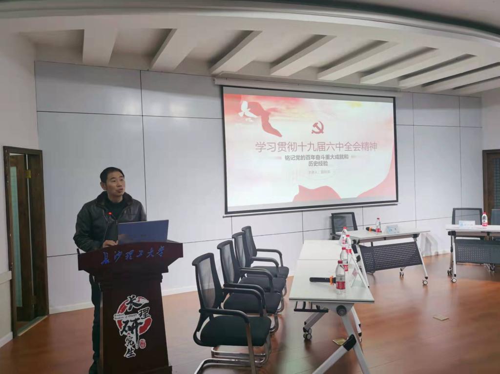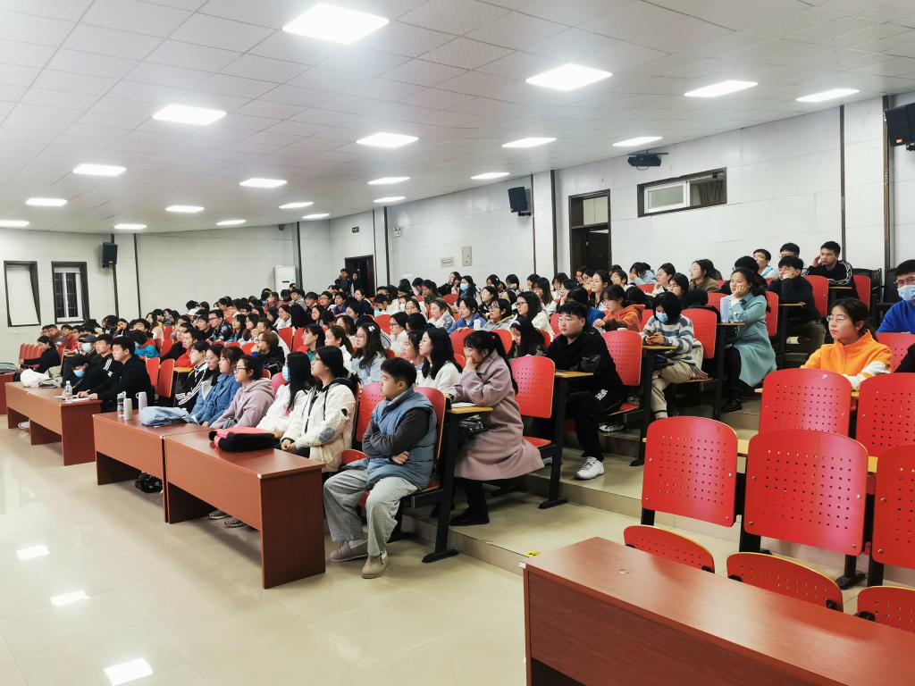 法学院分别于11月23日晚在金盆岭校区12教200报告厅召开2021级本科生大会、于11月25日晚在云塘校区文科楼一楼园厅报告厅召开其他各年级本科生大会,党总支书记田兴洪为法学院全体本科生宣讲党的十九届六中全会精神,党总支副书记汪功伟主持大会。