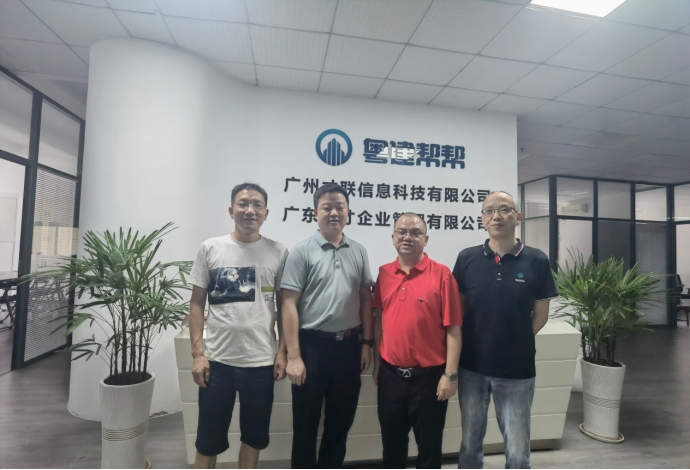 在粤建帮帮科技有限公司,汪伦与公司总经理彭德祥及其团队进行了深入交流。负责人彭德祥介绍了公司的业务布局及对法律服务的需求,表达了希望与法学院在法律人才培养、实习基地建设等方面开展深入合作的愿望。