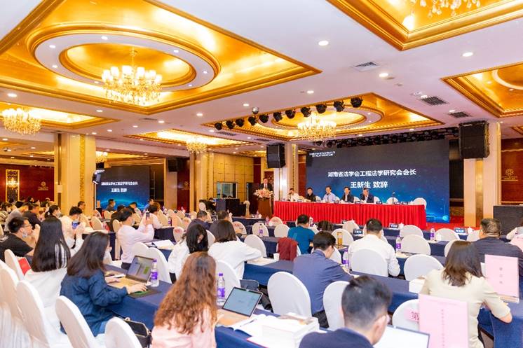 2021年5月23日,由湖南省法学会工程法学研究会、长沙市建筑业协会主办的“民法典时代建设工程合同风险防范暨工程总承包法律实务论坛”在长沙召开。本次论坛邀请来自全省各政府部门、实务部门、高校、研究机构等单位的近三百名专家学者、实务精英参加。我院王新生教授作为湖南省法学会工程法学研究会会长出席活动,申纯副院长、杜卫红副教授、陈骞博士及研究生等受邀参加了本次论坛。