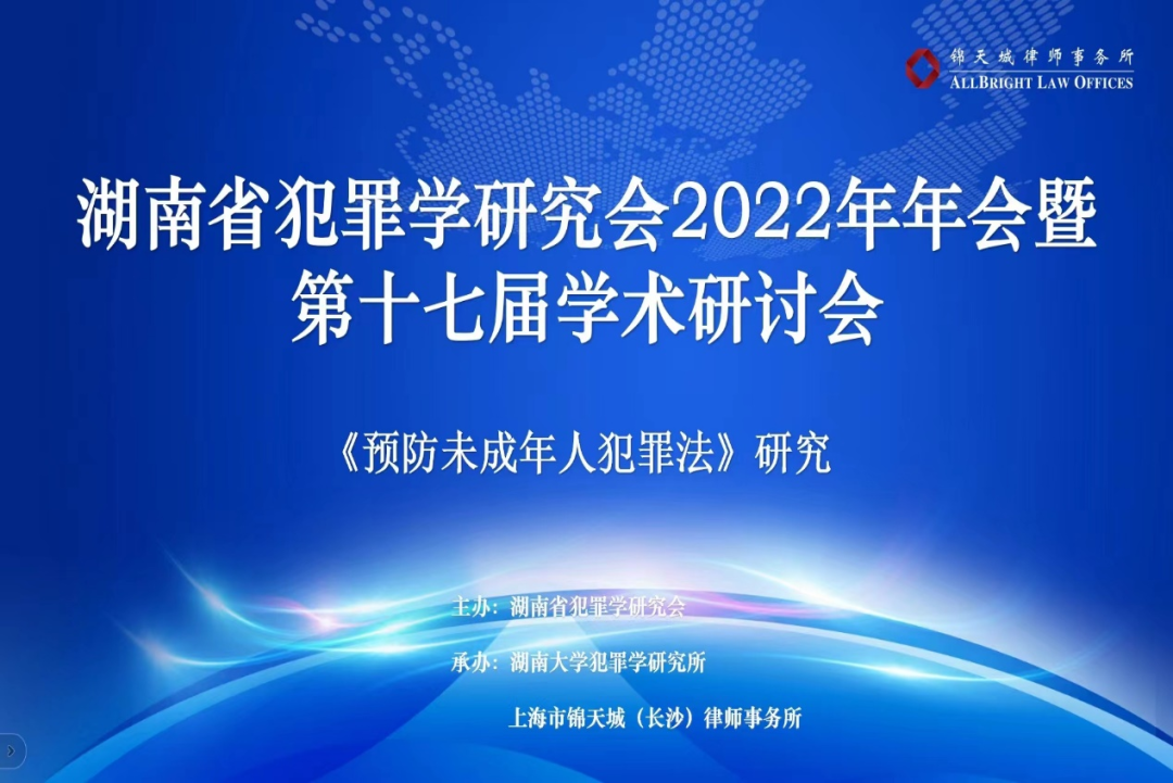 8月13日,因疫情延迟召开的湖南省犯罪学研究会2022年年会暨第十七届学术研讨会在长沙世茂环球金融中心召开。这次年会主题为“《预防未成年人犯罪法》研究”,由湖南省犯罪学研究会主办,湖南大学犯罪学研究所、上海市锦天城(长沙)律师事务所承办。湖南省人大社会建设委员会、太阳成集团tyc122cc入口法学院等单位的60余位专家学者和实务界代表参加了本次研讨的现场会议,近100余名线上会员参与。我院党总支书记、教授、法学博士田兴洪、我院副教授、法学博士刘文莉应邀参加会议。