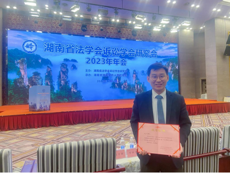 12月16日,湖南省法学会诉讼法学研究会2023年年会在湖南张家界隆重开幕。湖南省高级人民法院副院长杨翔,湖南省人民检察院副检察长印仕柏,湖南省法学会副会长兼秘书长高可议,湖南省法学会副会长、诉讼法学研究会会长、湘潭大学党委副书记廖永安出席开幕式。张家界市委副书记、市委政法委书记曾若冰,张家界市人民检察院党组书记、检察长罗树中出席并致辞,来自全省法学界、司法实务界等150余人参会。我院孔凡琛博士应邀参加会议。