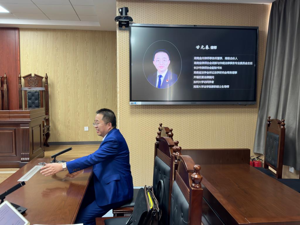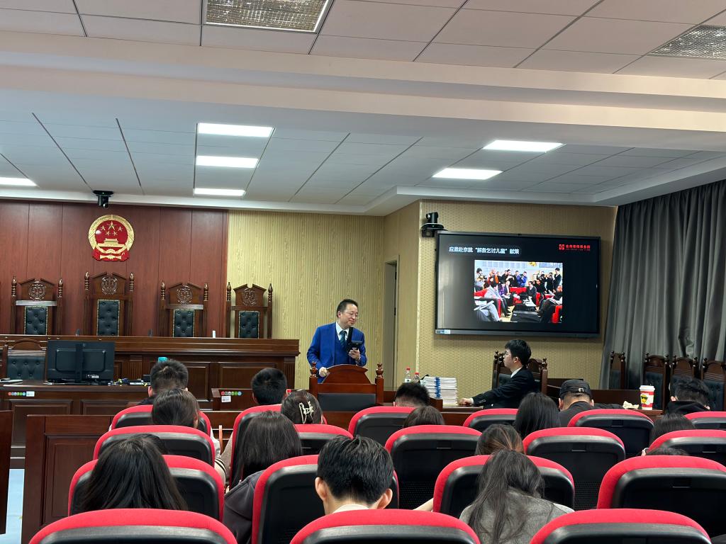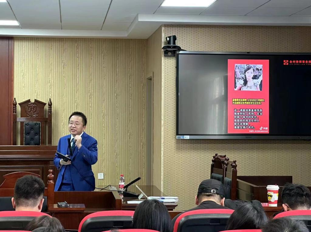 2023年3月6日,湖南金州律师事务所董事、高级合伙人甘元春律师受太阳成集团tyc122cc入口法学院邀请,以一名刑辩律师的执业经历,给法学院20级的同学们上了一堂形象而又生动的模拟法庭课。