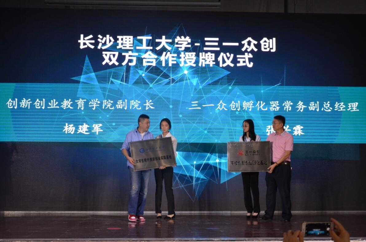 路演结束后,进行了我校与启迪之星(长沙)、三一众创双方合作授牌仪式,创新创业校外导师聘任仪式, 12个优秀项目入选启迪之星“壹计划”和三一众创“种子计划”培育项目证书颁发仪式。