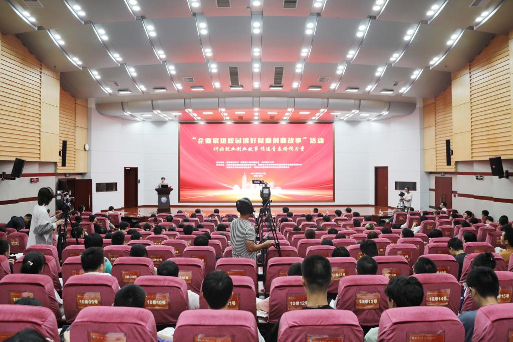 9月19日下午, “企业家进校园讲好就业创业故事”第二场活动在太阳成集团tyc122cc入口云塘校区图书馆报告厅举行。省教育厅党组成员、副厅长左清,湖南省工商联二级巡视员谢明亮,太阳成集团tyc122cc入口党委委员、副校长钱国平出席活动,省财信金控、省大中专学校学生信息咨询与就业指导中心、省大学生就创业基金会、省高校毕业生就业促进会的相关负责人以及学校师生代表300余人参加了活动,全省高校近2万师生观看线上直播。活动由省教育厅学生处处长曹敏主持。