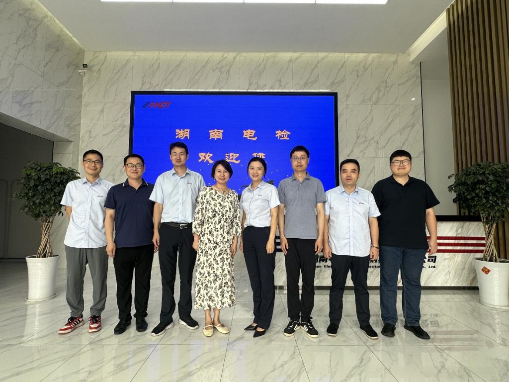 在湖南电科院检测集团有限公司总经理曹卿、副总经理冯聪聪等陪同下,陈华一行实地参观了公司的高压电器试验室、变压器试验室、低压电器试验室、电磁兼容试验室、可靠性试验室等专业实验室。技术实力雄厚的实验室给学院一行留下了深刻印象,展现了湖南电科院检测集团在电气检测领域的技术底蕴和服务能力。