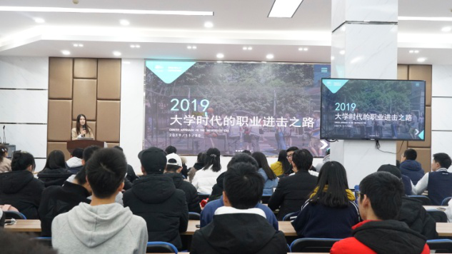 11月30日下午,由校创新创业协会、吉先锋俱乐部共同主办的第二期大学生“职?创”交流会在创新创业园A207会议室举行,本次交流会的主讲嘉宾是吉利控股集团人力资源部校园招聘负责人季秋辰、赵郁芳,创新创业教育办公室主任常晗和百余名学生参加了本次活动。