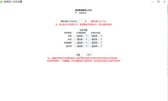 步骤5.   标签设置好后,关闭页面。点击【录入】按钮,并设置“成绩方式”和“成绩项目”,点击【保存】完成成绩录入方式的设置和成绩项目所占比例的设置。如图成绩录入设置页面。