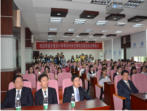 授牌仪式前,天健会计师事务所还在经济与管理学院进行了校园宣讲和现场招聘面试,我校100多名应届毕业研究生、本科生参加了宣讲面试。招聘现场气氛热烈,天健会计师事务所招聘人员高度评价了我校毕业生的综合素质,希望能吸收更多的优秀人才加盟天健。