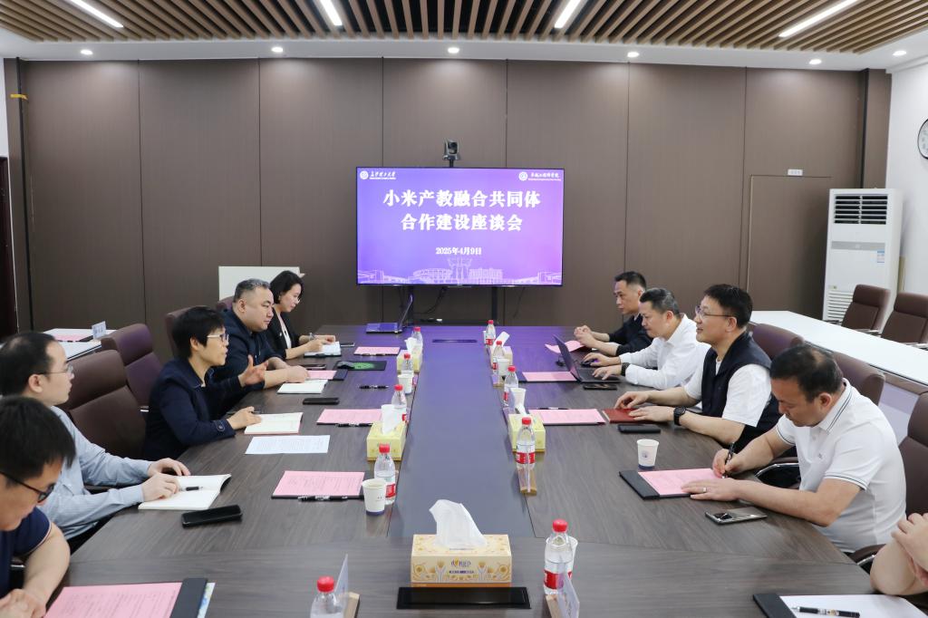 4月9日上午,小米产教融合共同体合作建设座谈会在云塘校区新工训大楼417会议室召开。湖南省央企合作对接暨重大招商引资驻京工作专班副主任李学斌、专班成员梁亚,小米集团产教融合对外合作部区域营销总监张忠玉,湖南船山教育科技有限公司总经理周响应、总监冯志刚出席会议。卓越工程师学院院长韩艳、党委副书记副院长陈华、副院长吴钢、交叉创新研究中心主任王力东、产教融合发展中心贺浩、田双喜参加会议。会议由韩艳主持。