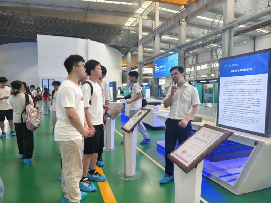 随后,一行人跟随参观“社区、景区、产区”三区一体企业园区,进一步了解企业文化、体验员工日常生活。唐美强主管带领一众人参观园内系列设施。
