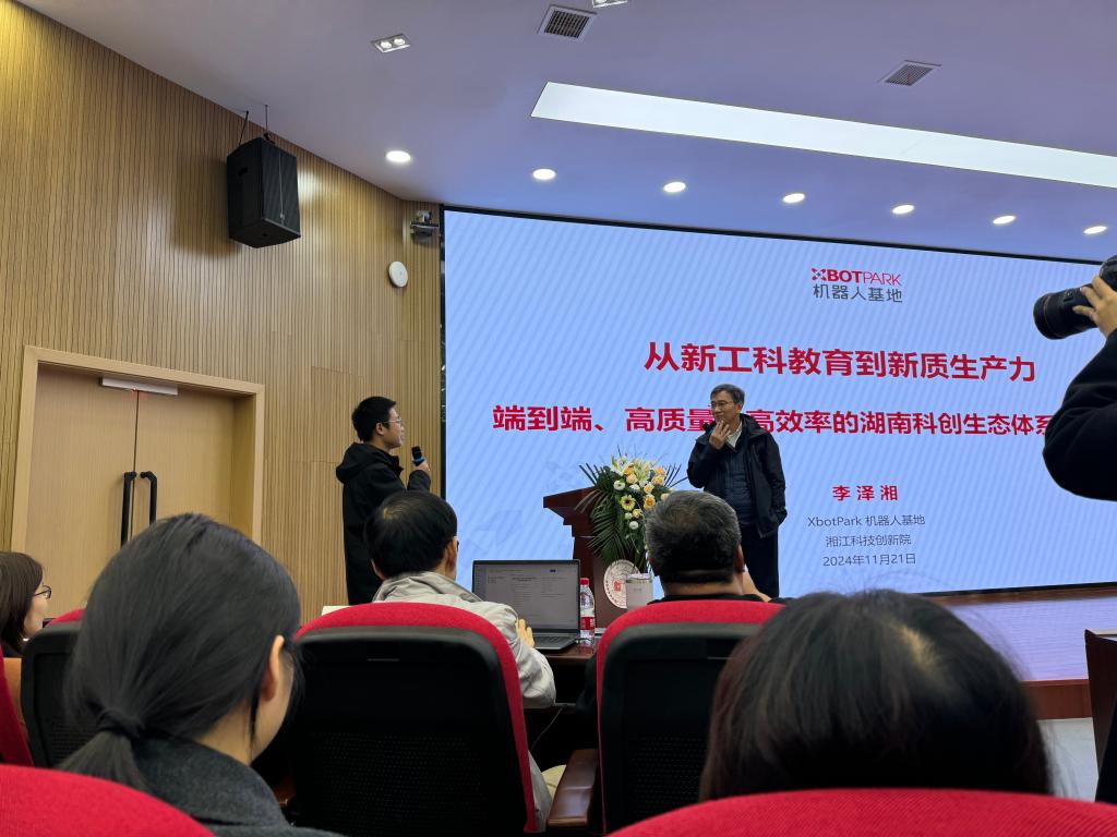 11月21日下午,一场以《从新工科教育到新质生产力端到端、高质量、高效率的湖南科创生态体系建设方案》为主题的学术讲座在湖南大学综合教学楼208会议室成功举办。此次讲座由香港科技大学电子与计算机工程学系教授、固高科技董事长、松山湖国际机器人产业基地发起人李泽湘主讲,我校卓越工程师学院2024级全体本科生及各高校卓越工程师学院学子参加。