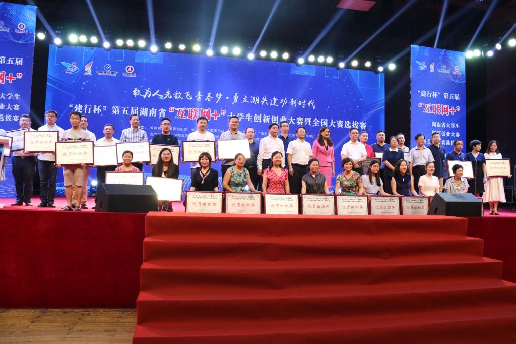 2019年8月27日,建行杯第五届湖南省“互联网+”大学生创新创业大赛在湖南工商大学落下帷幕。我校副校长蒋昌波以及创新创业教育学院负责人、材料科学与工程学院负责人、物理与电子科学学院负责人、经济与管理学院负责人、设计艺术学院负责人、获奖项目团队指导老师、项目负责人、团队代表参加了在湖南工商大学体育馆举办的颁奖典礼。