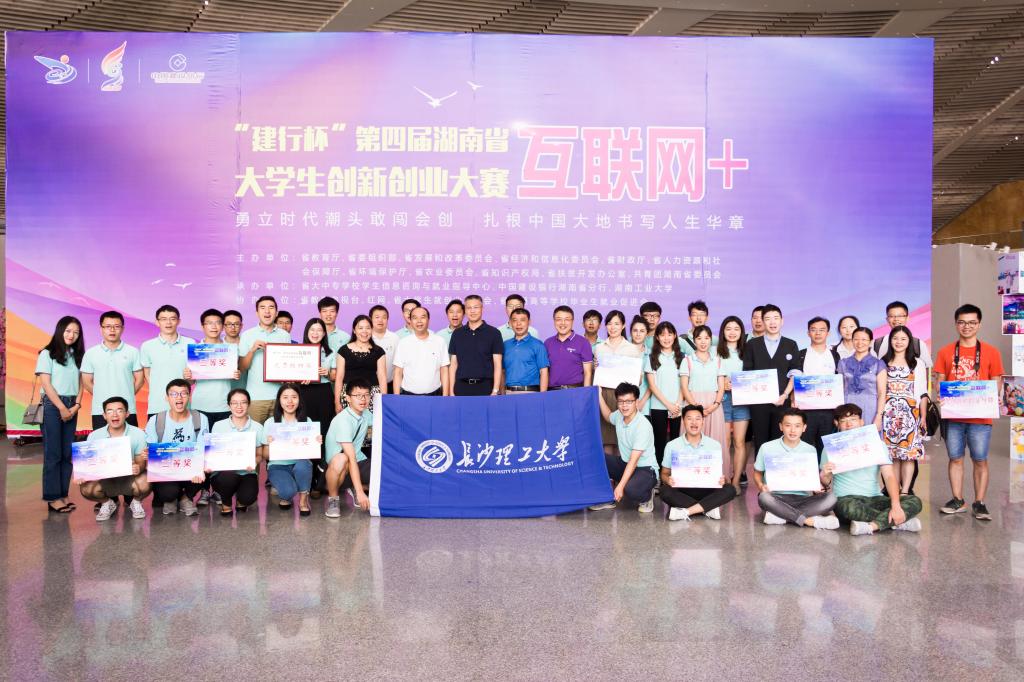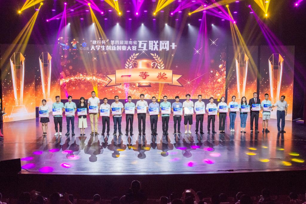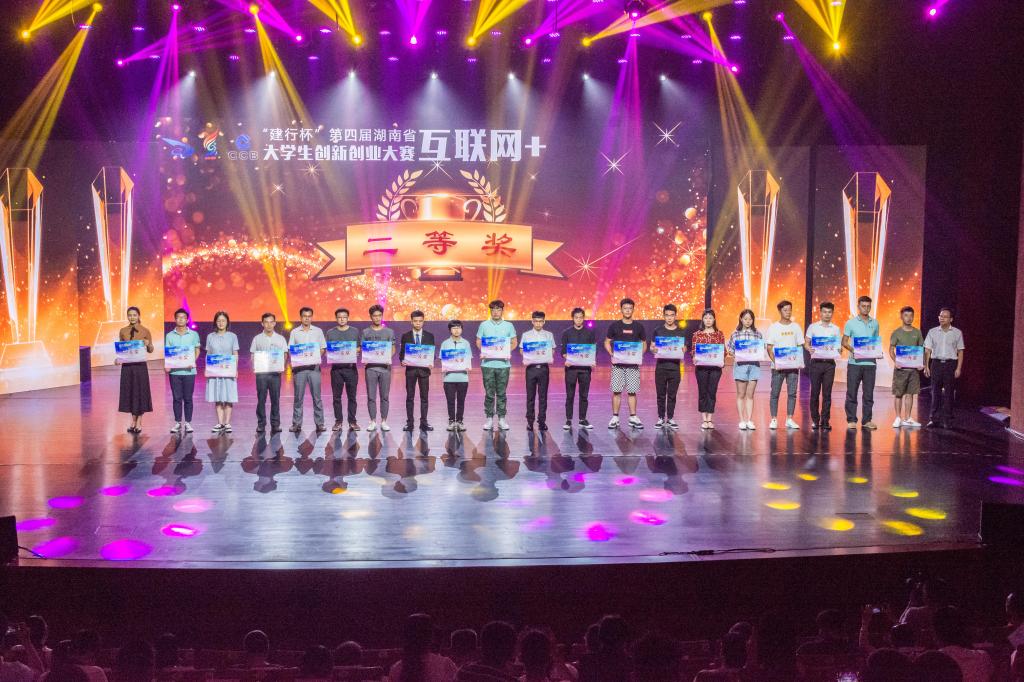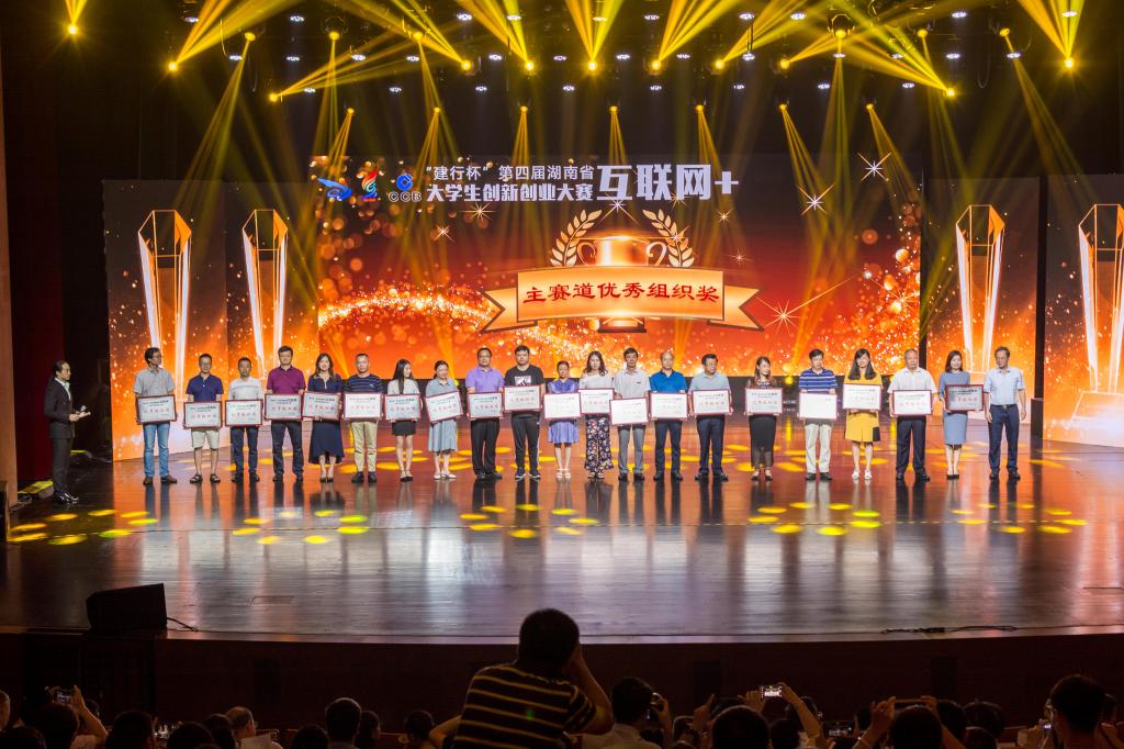 2018年8月31日, “建行杯”第四届湖南省“互联网+”大学生创新创业大赛在湖南工业大学落下帷幕。我校副校长蒋昌波、以及创新创业教育学院负责人、项目团队指导教师、获奖团队代表等45人参加了在株洲神龙大剧院举行的颁奖典礼。