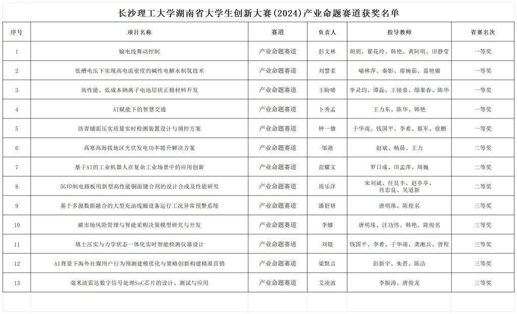 附:我校湖南省大学生创新大赛(2024)产业命题赛道获奖名单