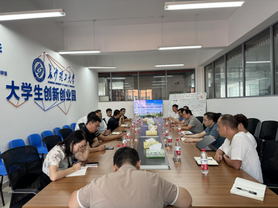 蔡慧勇一行首先参观了大学生创新创业园,详细了解了园区运营情况、孵化项目特色及科技创新成果。随后,在创业园505会议室召开了座谈会,会议由杨现锋主持。会上,蔡慧勇等首先介绍了邵阳县的基本情况,并希望借助此次机会,引入更多高校智力资源,助力邵阳县产业升级和乡村振兴。杨晨等对蔡慧勇一行表示欢迎,表示希望将我校优势创新创业项目与邵阳县特色产业结合,共同搭建平台,助力学校人才培养和邵阳县经济发展。与会企业代表积极参与讨论,纷纷表达了对邵阳县产业升级和乡村振兴项目的浓厚兴趣,提出了将自身技术优势与邵阳县特色资源深度融合的构想与方案,促进创新创业成果的转化与应用。