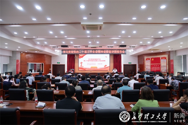 根据省委统一部署,9月1日下午,学习贯彻党的二十届三中全会精神省委宣讲团在我校云塘校区一办公楼九会议室举行报告会。省委宣讲团成员、省委党校(湖南行政学院)教授张四梅作宣讲报告。校党委书记付宏渊主持报告…