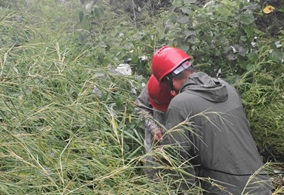 途中,山路被茂密竹林阻断。唐祖志带领队员借来镰刀,在竹丛中奋力开辟出一条抢修通道。过程中,陈凌不慎因青苔滑倒,手臂被竹刺划出多道血痕。