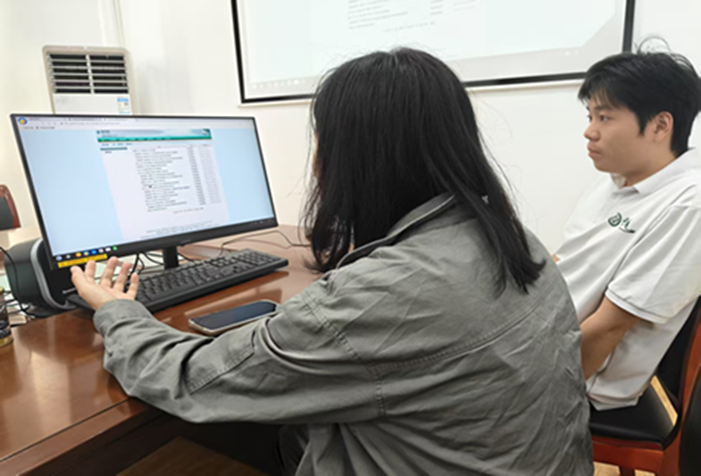 7月29日,电气学院赴国网湘乡市供电公司实践队的队员们在营业厅班组副班长何天月的指导下,对迎峰度夏期间的电网基础资料进行系统化整理。面对浩繁的台账与记录,队员们筑牢数据基石,在方寸纸页间体悟电网安全运行的隐形防线。