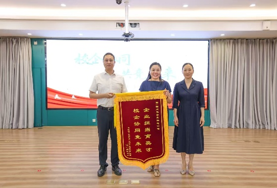 会议最后,丁丹代表学院向国网张家界供电公司郑重授予“企业担当育英才 校企协同竞未来”的锦旗,以彰谢忱。她深情寄语全体实践队员,勉励大家牢记此次实践的宝贵经历,积极分享收获感悟,将所学所获内化为成长动力,为未来投身电力事业、服务国家发展积蓄坚实力量。