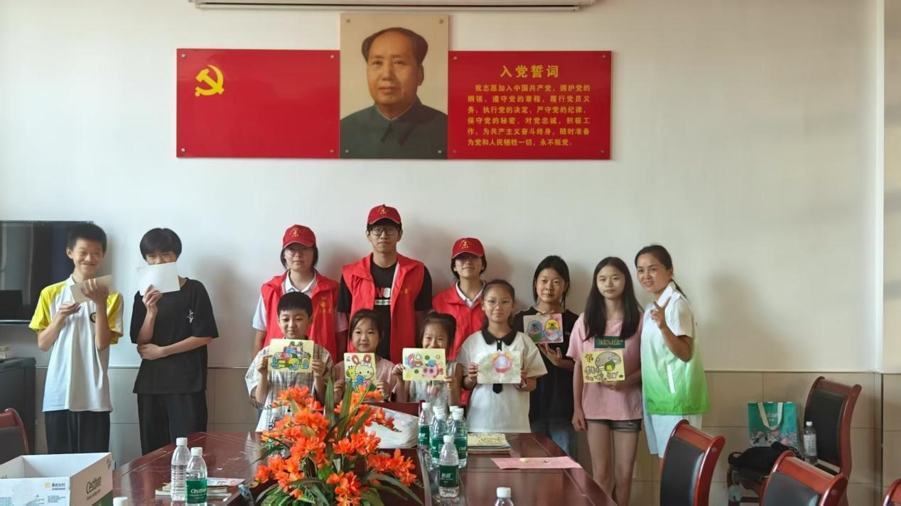 8月4号上午8:30,红仑供电所的林会计带领实践队员来到了城北村委会,正式开启了暑期关爱儿童志愿活动。此次活动旨在响应暑期安全宣传号召,丰富乡村儿童假期生活,将知识与关爱送到孩子们身边。实践队员们迅速进入状态,实践队员精心组织了涂画活动,与孩子搭档共同完成创作。孩子们描绘着美丽的图案,队员们在一旁耐心陪伴、鼓励赞赏,协助调色。现场充斥着欢声笑语。伴随着一笔笔的绘制,一幅幅充满童趣的画作呈现出来,构筑了孩子们童真的乐园,渲染了孩子们童年的华彩,这不仅是艺术的萌芽,更是志愿陪伴下结出的快乐果实。