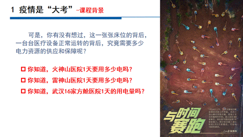 张静老师围绕“战疫保电,国网在行动”,分别从电力供应、物资供应、人员调配三个方面解读了国网的应对措施,重点介绍了火神山、雷神山等新建医院的输电保障过程,强调了湖北电网的战略地位,并引出了特高压输电工程对于国家能源输送的重要意义。